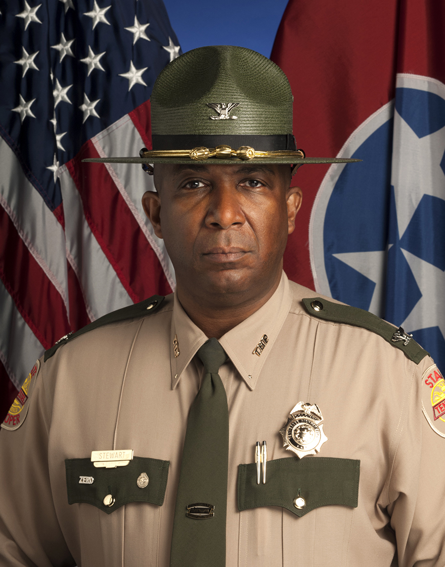 Colonel Stewart became a state trooper with the Tennessee Highway Patrol in Montgomery County in 1987 and rose through the ranks before he became Colonel in 2018. Notably, Colonel Stewart became the first African-American Colonel in the history of the Tennessee Highway Patrol.