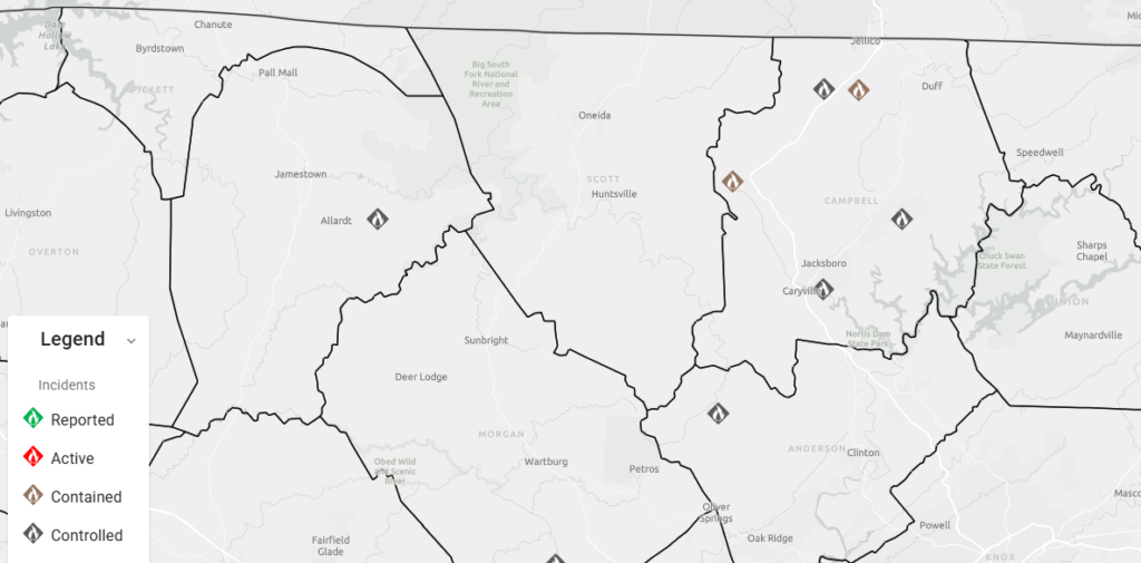 Upwards of 100 acres have burned, according to Tennessee Division of Forestry