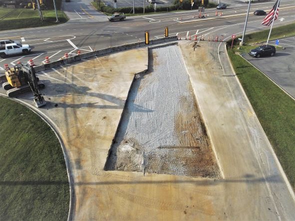 Traffic patterns changed on the afternoon of Wed., Aug. 10, when crews with La Follette Public Works placed cones and barrels directing traffic around the collapsing area of TSR at the four- lane. (WLAF NEWS PUBLISHED – 09/20/2022-6AM-PHOTOS COURTESY OF WLAF’S CHARLIE HUTSON)
