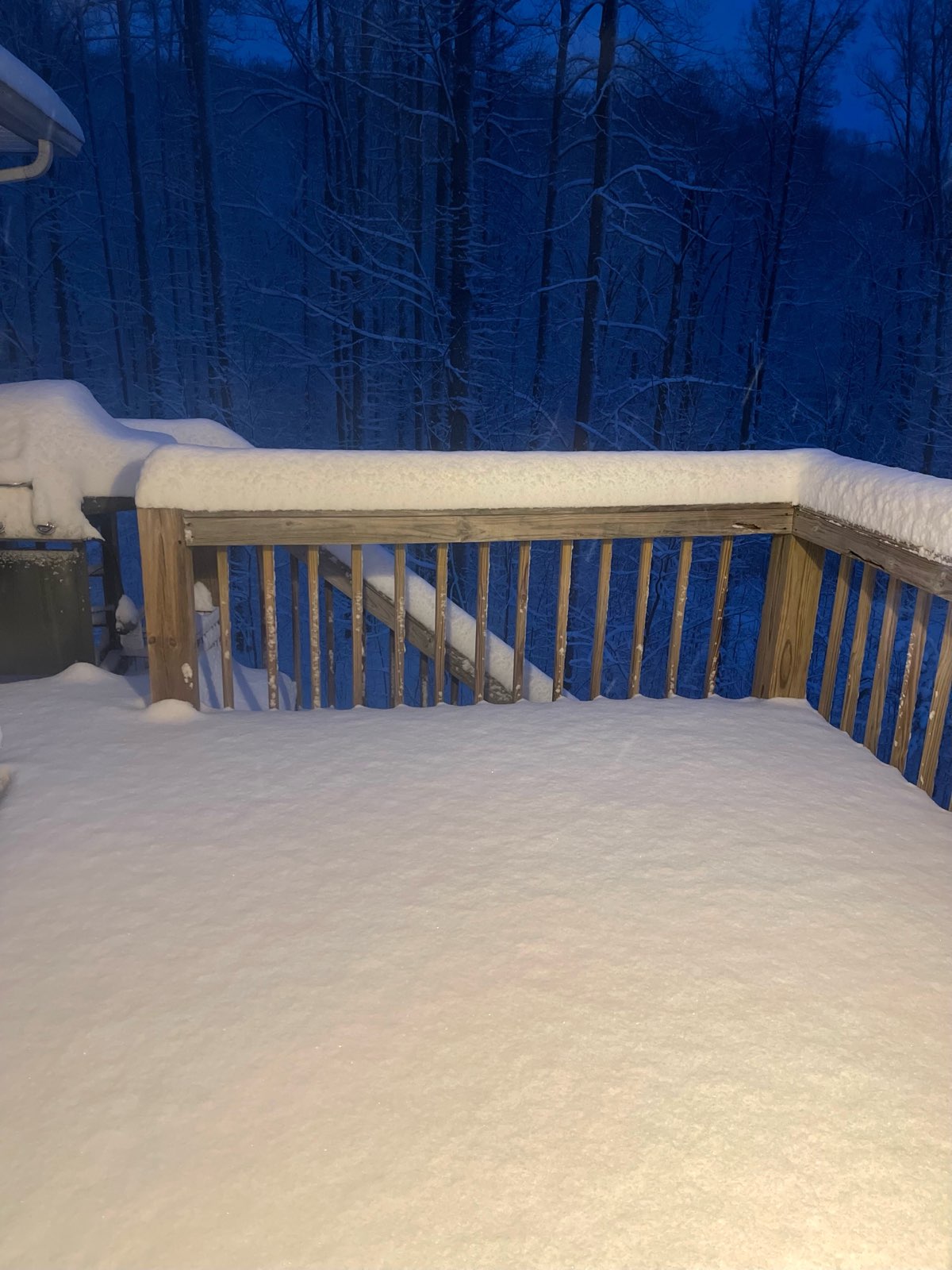 We have 8 inches of snow on our deck. Live in Pinecrest Area, of Campbell County.