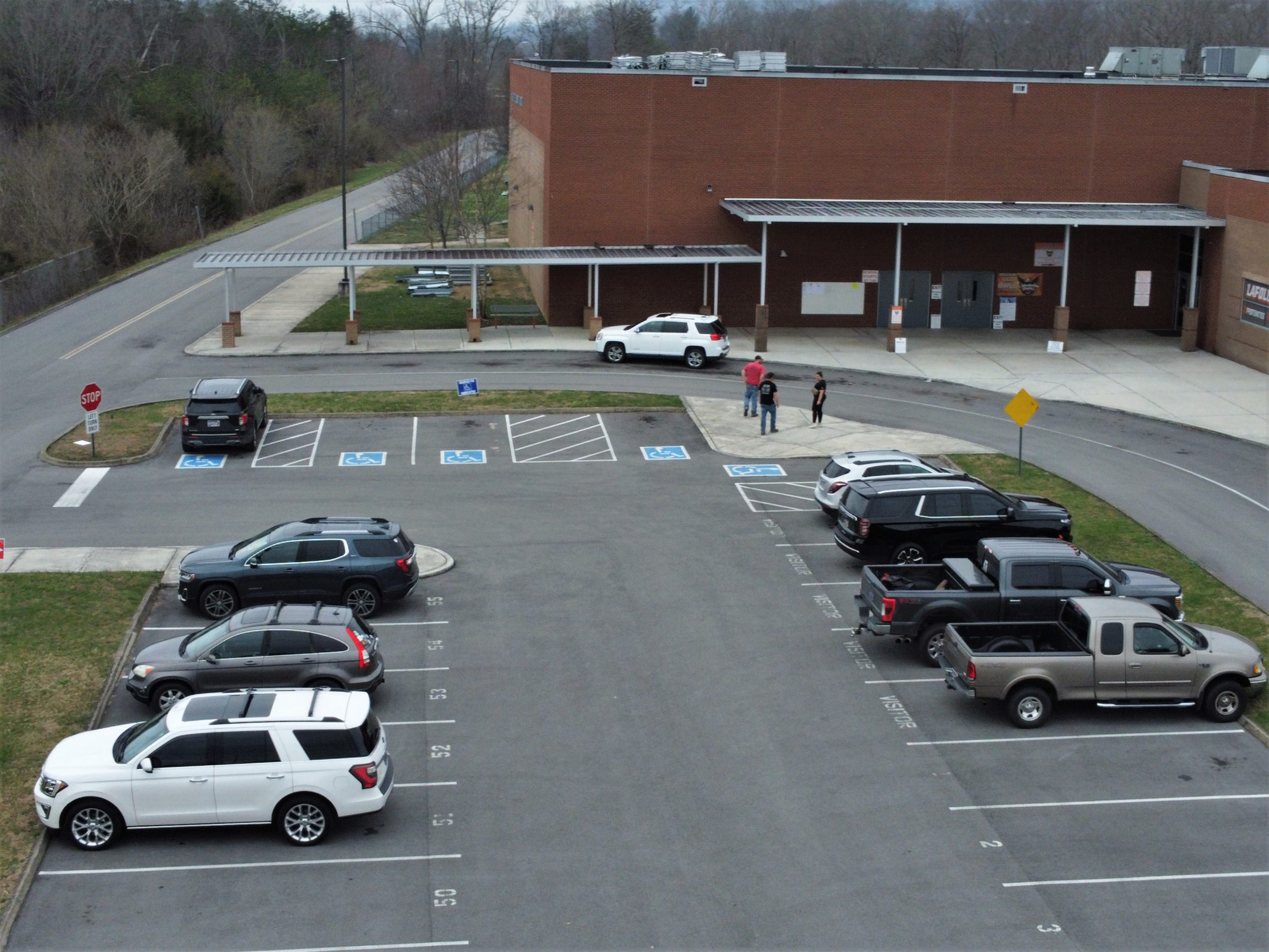 TOP PHOTO: WLAF’s Charlie Hutson shares a high above photo from Eagle I at the La Follette Elementary School on Super Tuesday.