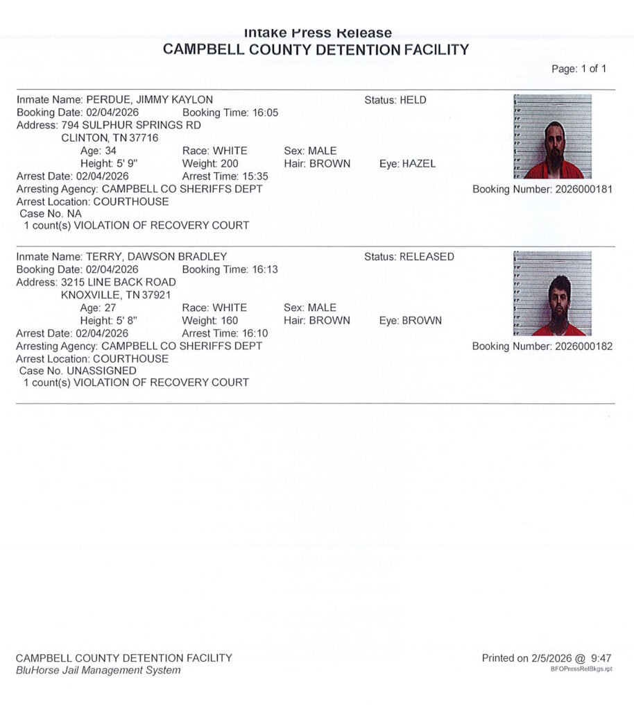 - Nine Names on Fri., Feb. 20, 2026, B.C. Bonding Arrest Report. B.C. Bonding, 423-563-0065.