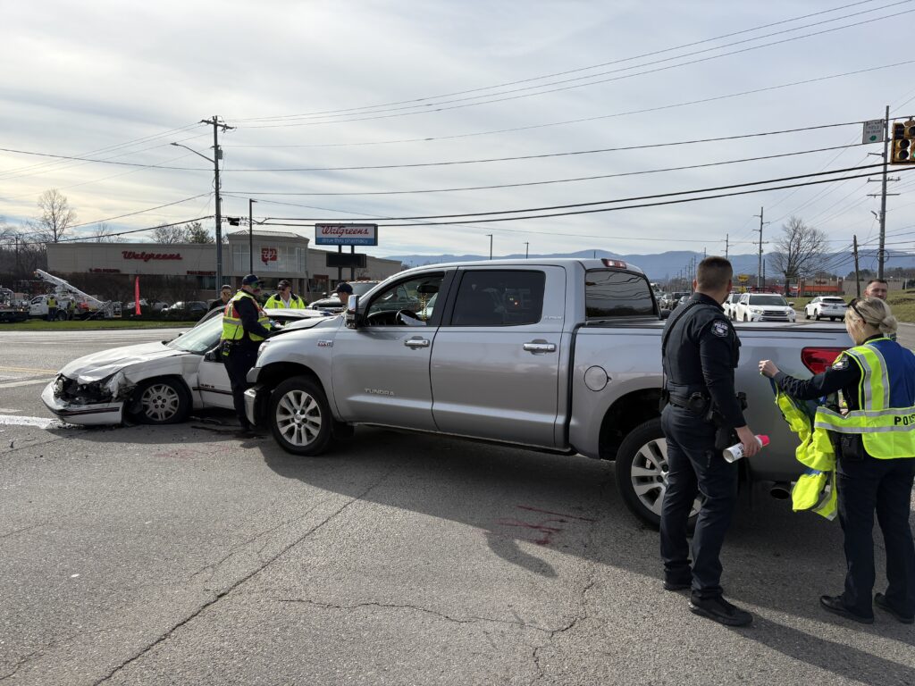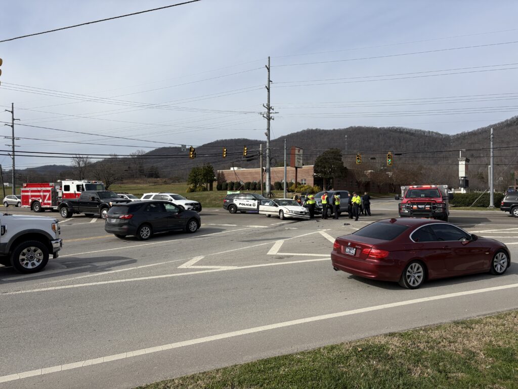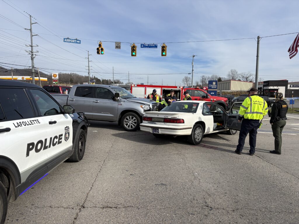 LAFOLLETTE, TN (WLAF)- A car and a pick-up truck collided under the stop light on the four lane at Towe String Road near Citizens Bank. The just-before-noon mishap injured at least one person and temporarily shutdown both La Follette bound lanes.