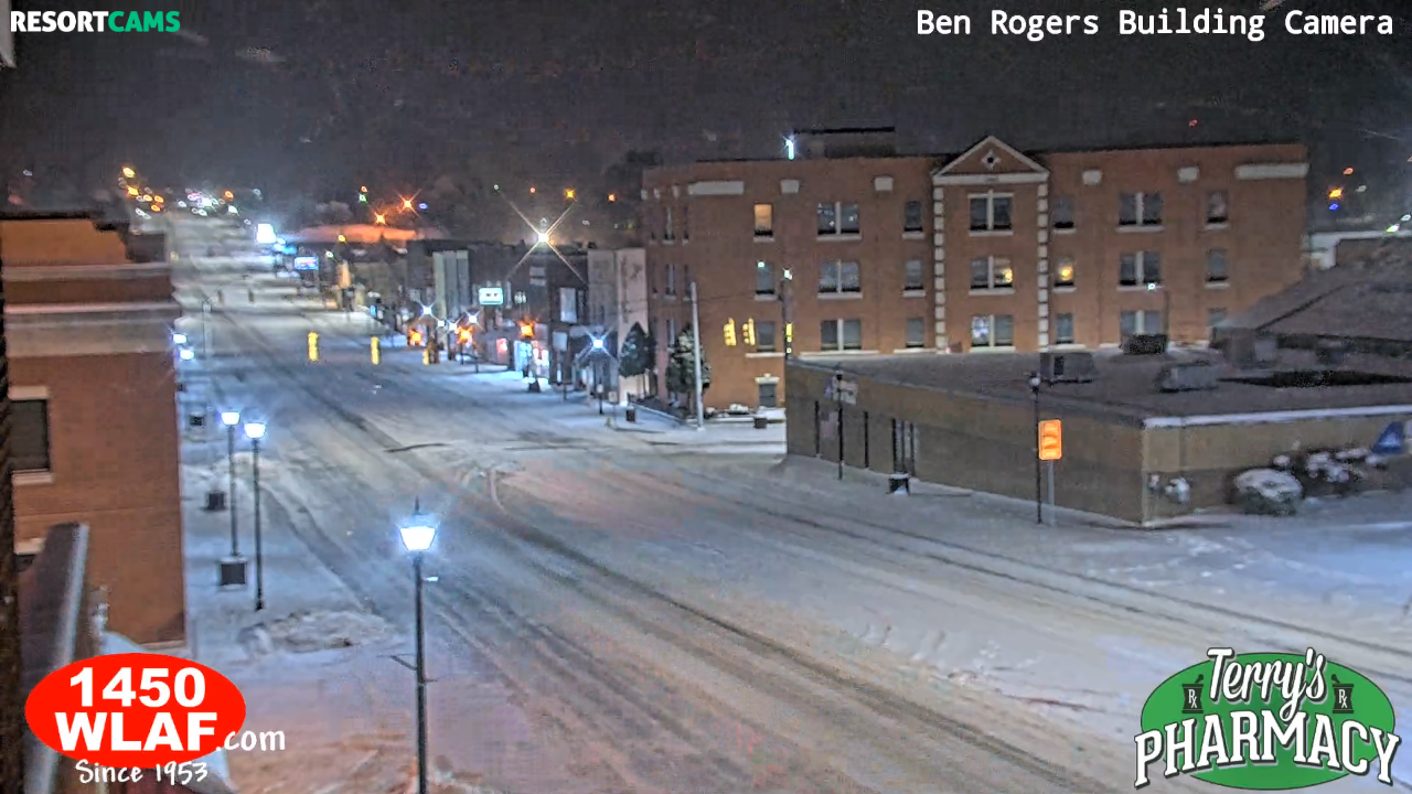 TOP PHOTO: This is a 6am Tuesday look via the WLAF-Terry’s Pharmacy “Snow Cam.”