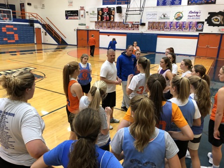 At Monday’s final practice before tonight’s home and season opener with Oneida, the Lady Cougars put the finishing touches of their entrance and warm up routine. It appeared that the only snag of the afternoon was when one player’s blue trunks went missing as Coach ‘Cutt was handing out uniforms for the season.