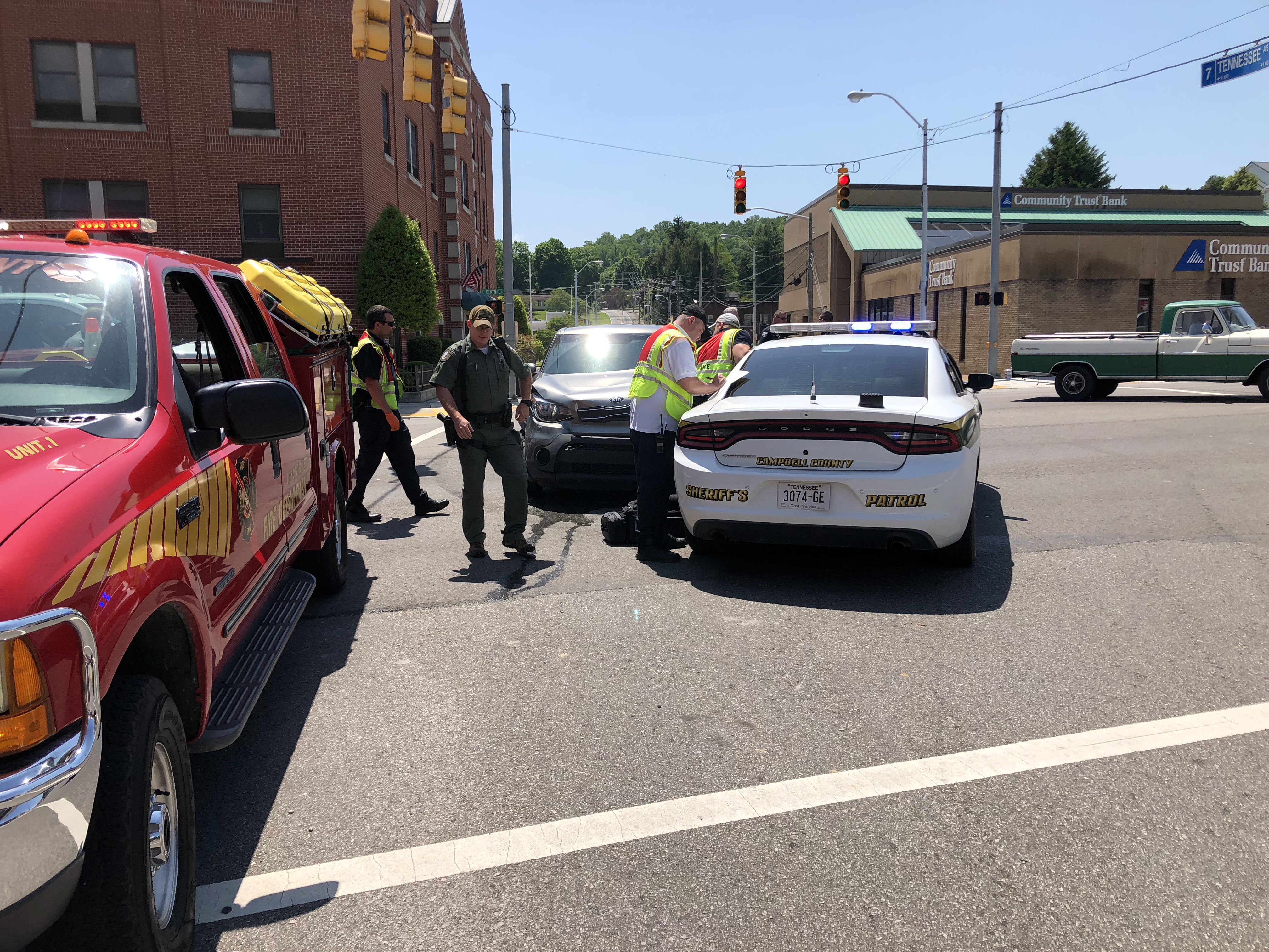 Clowers outlined that a 2018 Kia Soul, driven by 58-year old Deborah Lorraine Gibson of Speedwell, was traveling north on Hwy 25W (Central Avenue).  At the same time, 12:15 pm, Campbell County Sheriff’s Deputy James Aaron McCall, age 46 of Jacksboro, was heading north on Tennessee Avenue on duty in non-emergency status.  The deputy was behind the wheel of a 2016 Dodge Charger sheriff’s cruiser.