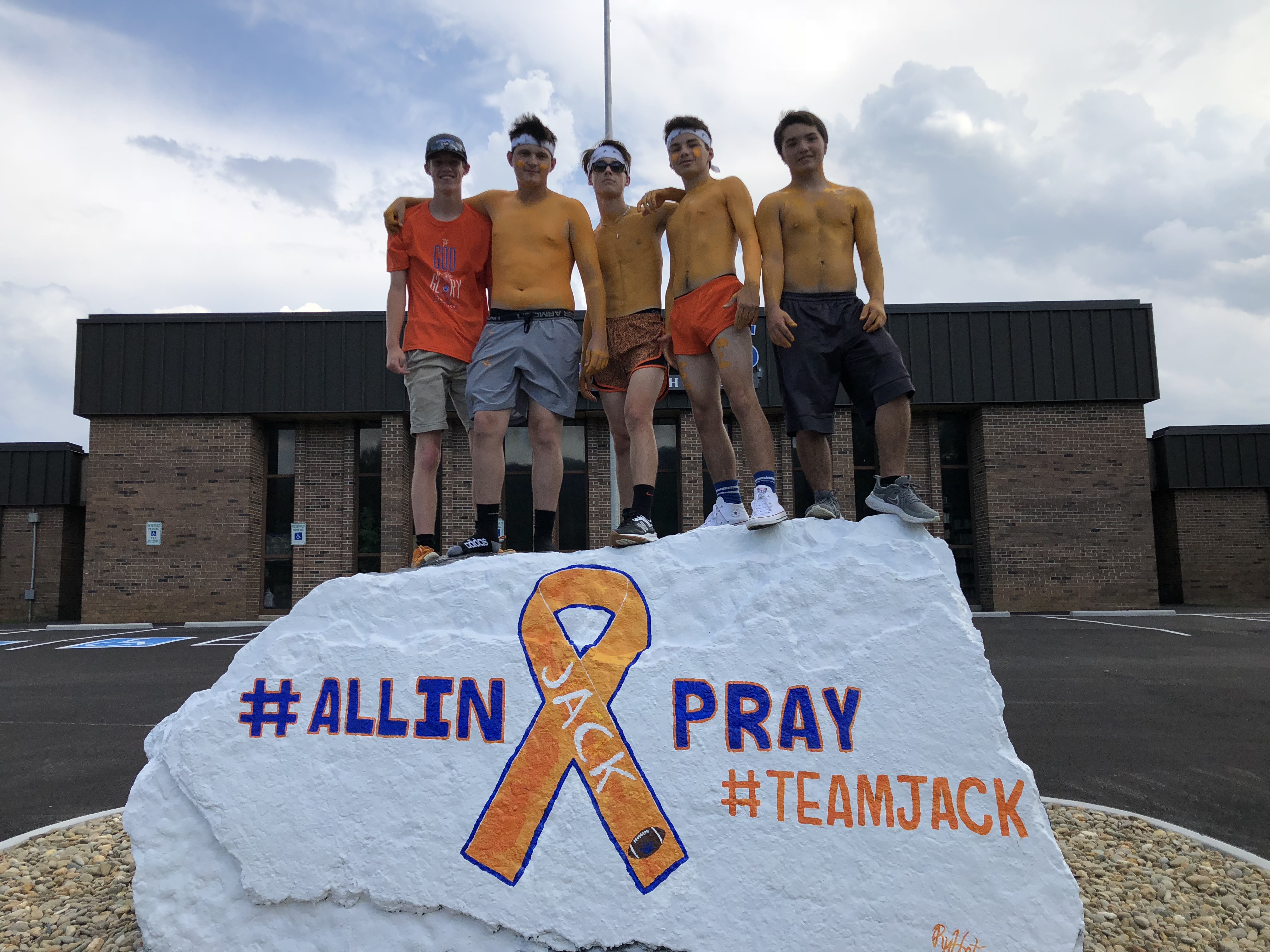 On the Cougar Track, CCHS Cheerleaders gather to send up a prayer for Jack (Price) long before Friday’s kick-off.