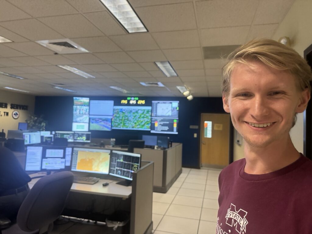 WLAF Meteorologist Jonah Brassfield in the offices of the National Weather Service at Nashville
