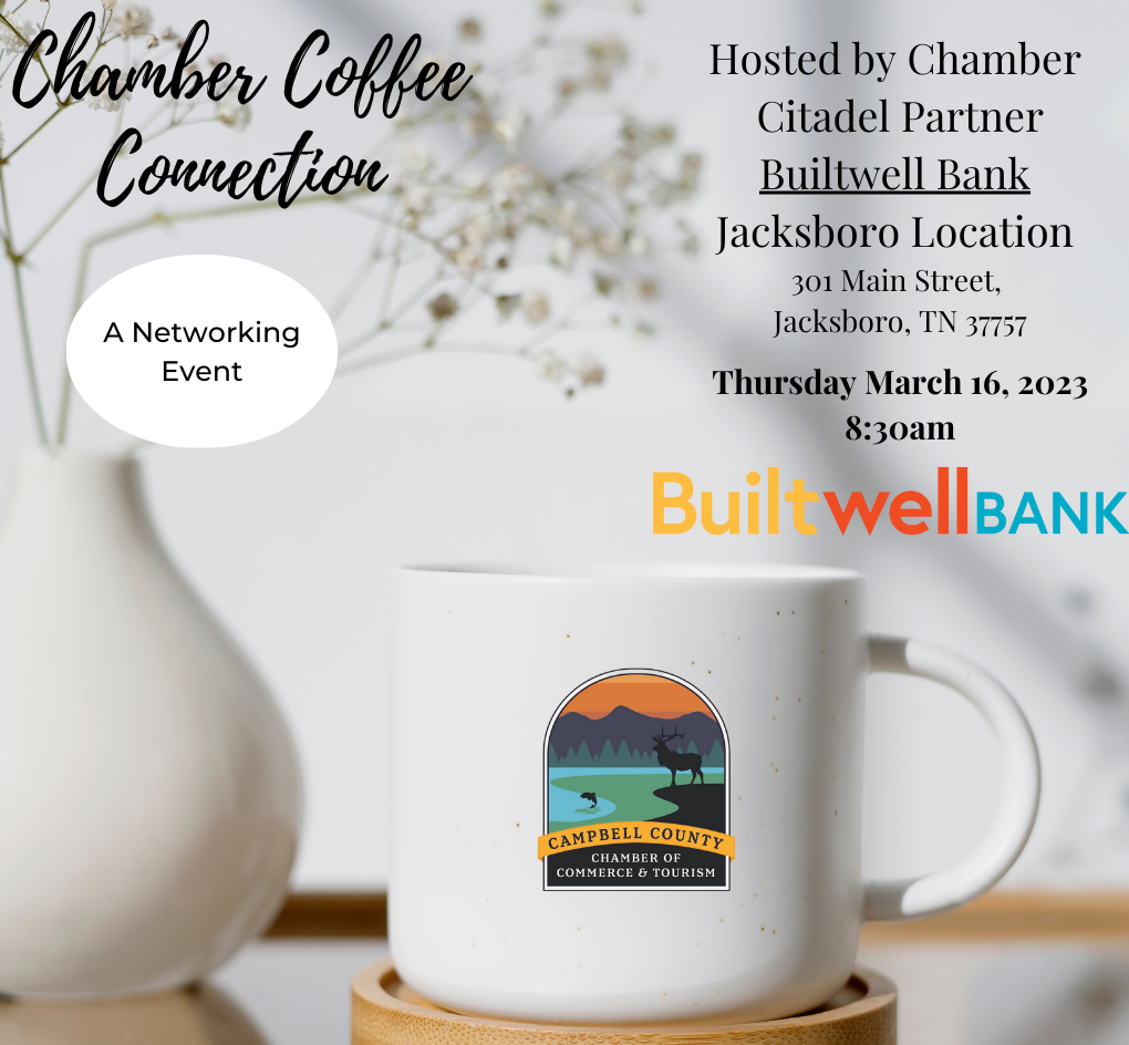JACKSBORO, TN (WLAF) – The Campbell County Chamber of Commerce and Tourism invites you to Thursday’s March Coffee Connection with Chamber Citadel Partner, Builtwell Bank. The event begins at 8:30am.