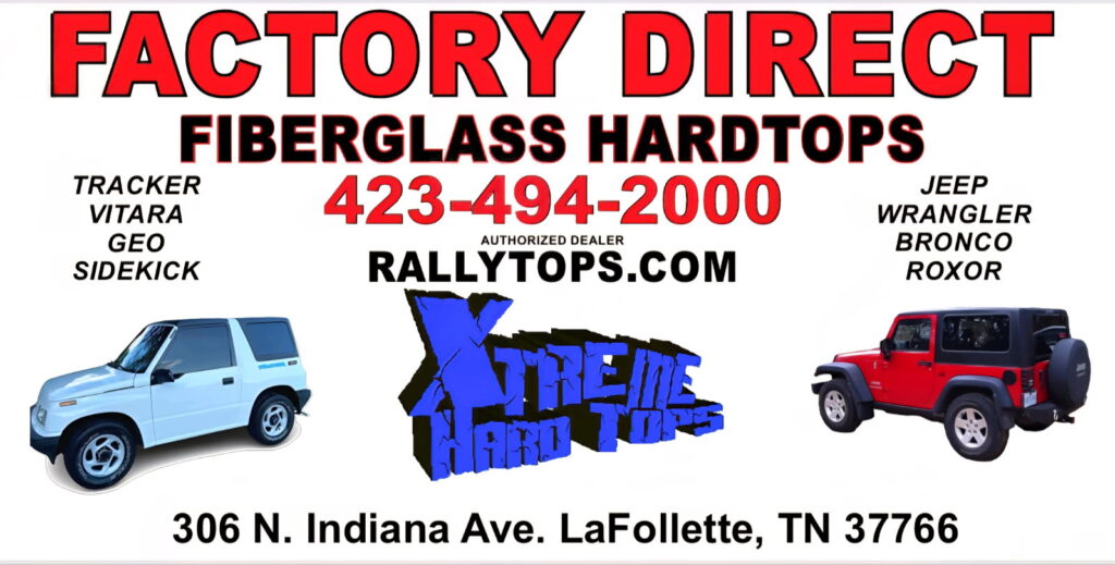 LAFOLLETTE, TN (WLAF)- Need a hard top for your Jeep, Chevy Tracker, Geo, Bronco, Roxor, Vitara, or Suzuki Sidekick? Give XTREME HARD TOPS a call and get 10 % off and free installation in the month of October!
