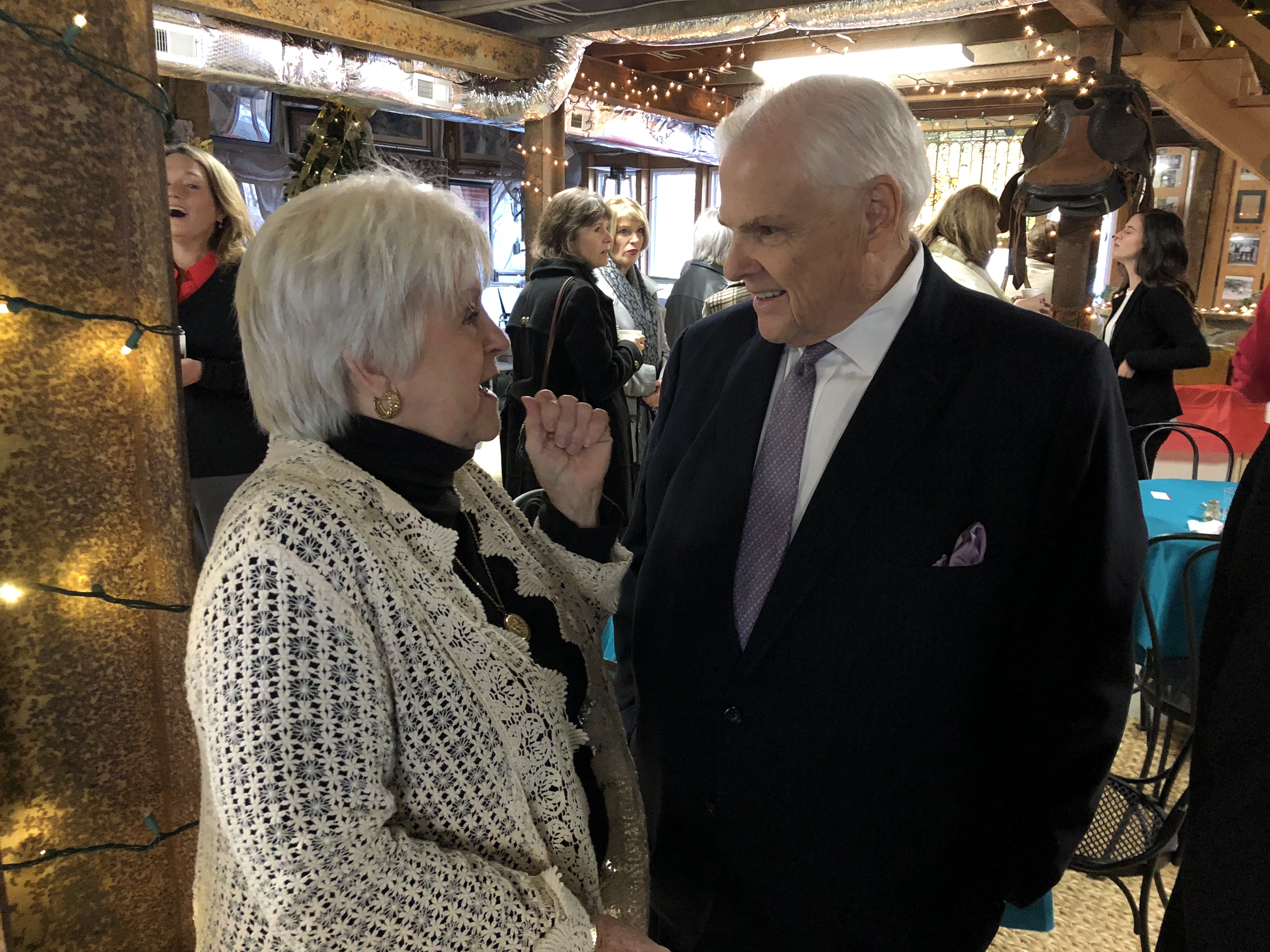 TOP PHOTO:Â School Member Faye Heatherly (left) visits with Senator Ken Yager (right) at a gathering in 2019.