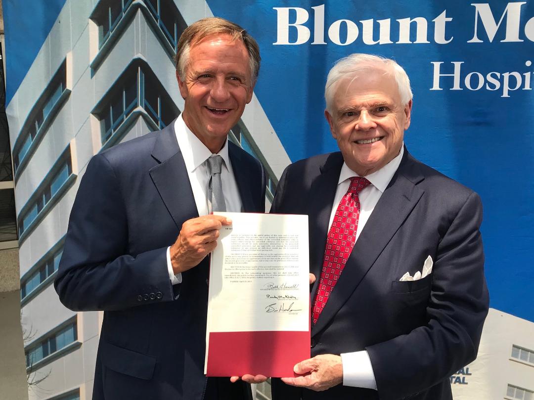 Senator Ken Yager (R-Kingston) recently participated in a ceremony with Governor Bill Haslam at Blount Memorial Hospital in Maryville marking the signing of a new law to fight Tennessee’s opioid epidemic.   Yager’s legislation addresses the law enforcement and treatment components of a three-pronged legislative plan to curb abuse, while a separate measure deals with the prevention component. Both laws, which are part of Gov. Haslam’s TN Together initiative, became effective on July 1.