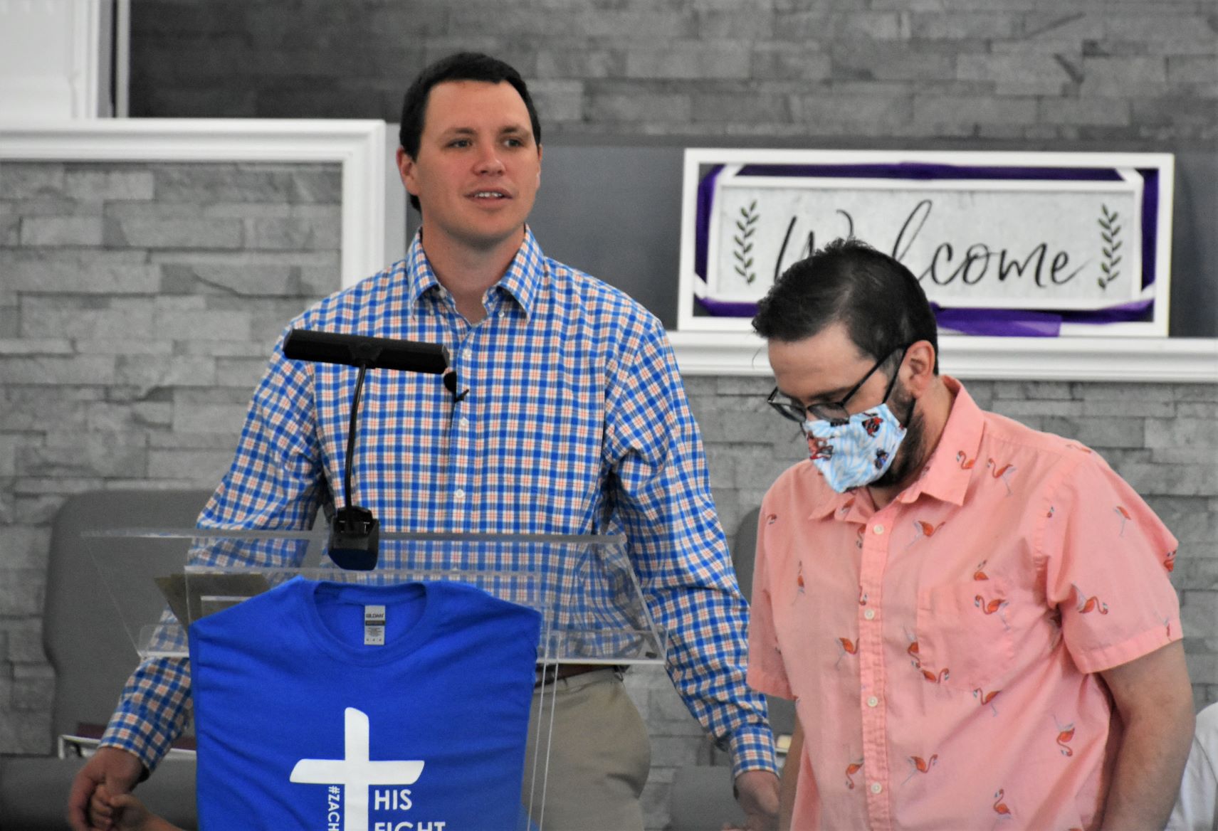 TOP PHOTO: East La Follette Baptist Church Youth Pastor Cody Mundy (left) welcomes ELBC Pastor Zach Lloyd back after his seven month battle with COVID-19. After being away from his church family since October, Zach Lloyd returned yesterday (May) for his first visit with friends and family at East La Follette Baptist Church.