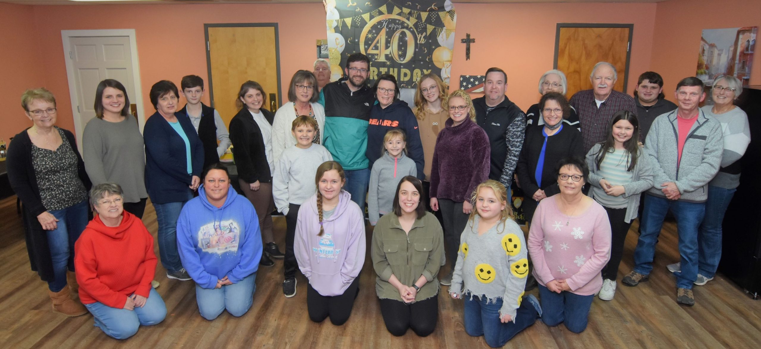 TOP PHOTO: A crowd, with lots of family, came out to surprise and celebrate Rev. Zach Lloyd with a party on Sunday night at East LaFollette Baptist Church. Zach turns 40 today.